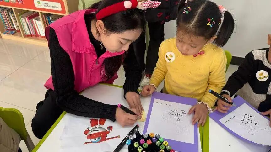 在“画笔下的童年”环节中,志愿者们化身为“绘本导师”,与孩子们一起创作绘本。孩子们用稚嫩的小手握着彩笔,在志愿者们的引导下,一幅幅充满童趣的作品逐渐完成。通过绘画,孩子们不仅表达了自己的想象力,也与家长和志愿者建立了更深的情感连接。