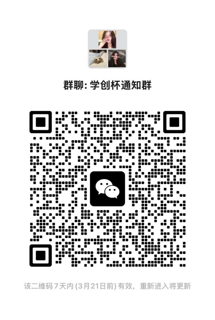 欢迎同学们积极参加,踊跃报名!如有意向报名参赛的同学,请扫码进微信群,关于本次大赛答疑以及后续比赛通知将会在本群发放。