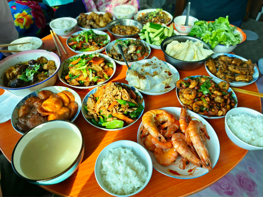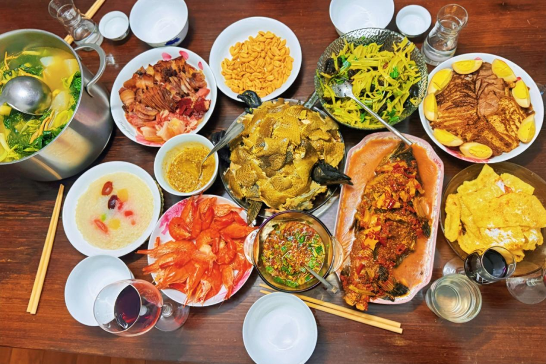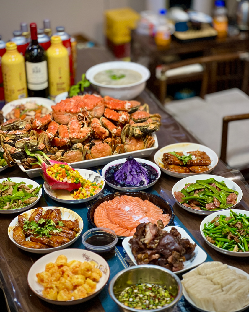 刘智贤同学用镜头记录了一桌丰盛的家常菜,有虾、炒菜、炖菜等。每一道菜都饱含着家人的爱意与用心,年夜饭不仅是美食的盛宴,更是亲情凝聚、温暖美好的时刻。