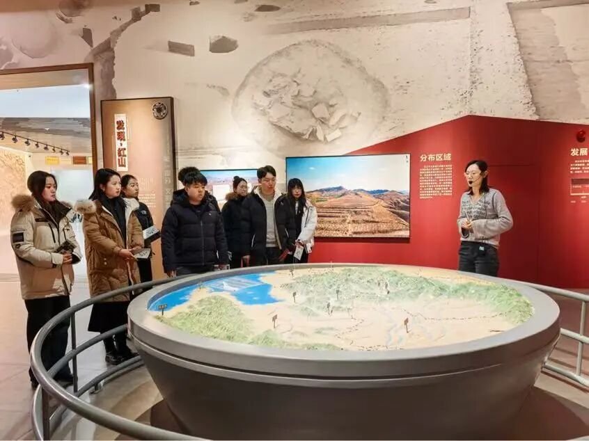 抵达赤峰后,师生们第一站来到了红山文化博物馆。在红山文化博物馆,师生们进一步领略了红山文化的独特魅力。精美的玉器、古朴的陶器,无一不在诉说着远古先民的智慧与创造力。师生们通过实地参观、互动体验,以及讲解员细致入微的讲解,深入了解了红山文化的内涵与价值,激发了大家对祖国历史文化深入探索和研究的兴趣,激励大家持续铸牢中华民族共同体意识,进一步引导师生们要坚定文化自信、担当使命、奋发有为。