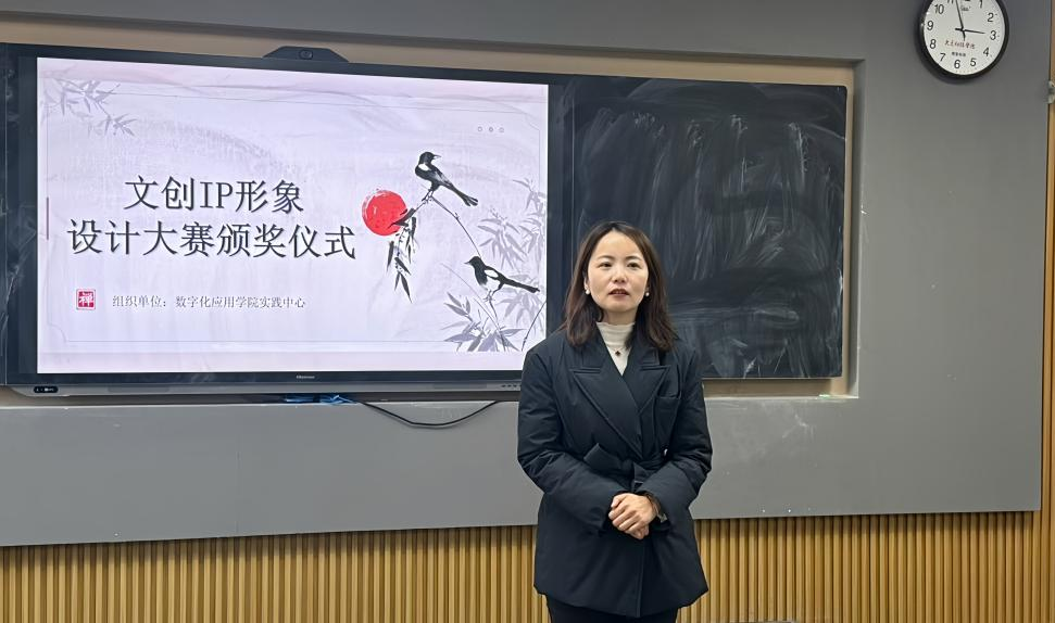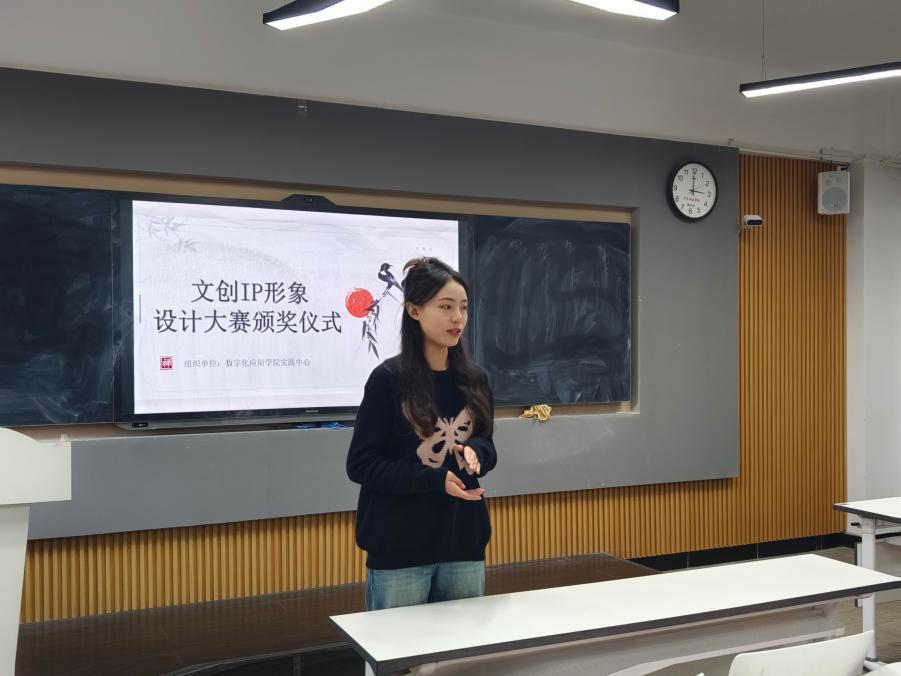 在颁奖仪式的最后,由数字化应用学院院长王莉莉与实践中心负责老师国莹楠对本次比赛进行总结,愿此次文创IP形象设计大赛能够成为新的起点,激励更多同学投身文创IP创作的浩瀚海洋中来。