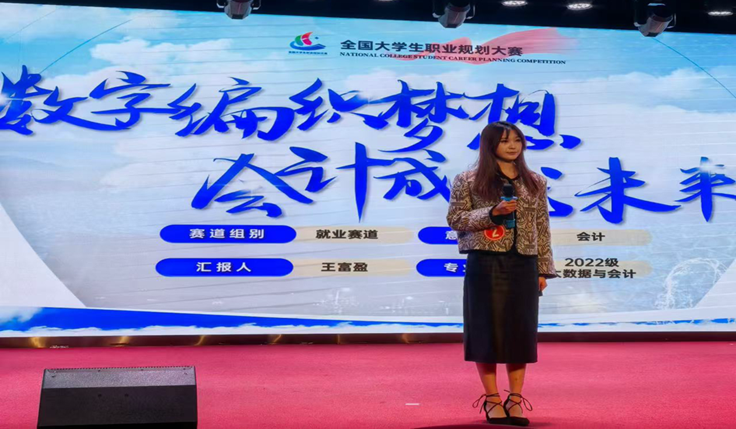 选手王富盈在李芸老师的指导下,对职业道路有着清晰的规划,赢得了评委老师和观众的一致好评,荣获就业赛道优秀奖。