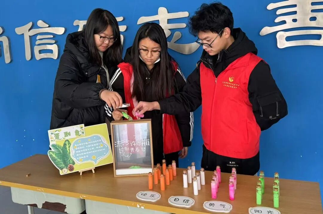活动现场,一个个透明的许愿瓶仿佛承载着青春的无限可能。同学们精心挑选着五彩斑斓的流沙,将自己对青春的憧憬与梦想注入其中。粉色的流沙代表着青春的活力与浪漫,蓝色象征着梦想的广阔与深邃,黄色寓意着希望的明亮与温暖。