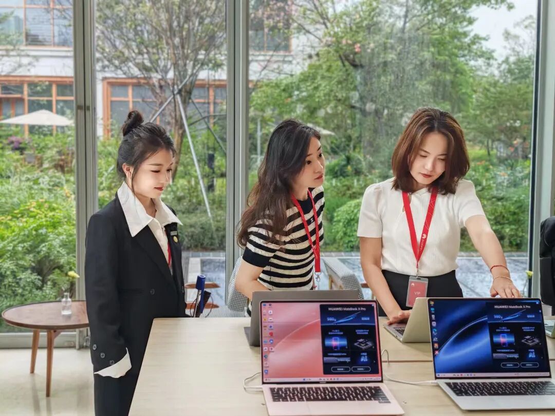 接着我们在工作人员的带领下参观了华为总部的各品类产品展馆以及东莞松山湖研发基地。基地位于东莞松山湖南部溪流半坡村,依湖而建,风景秀丽,建筑风格独具欧洲特色,充分展现了企业对于科技与美学融合的深刻理解。我们在基地内体验到了华为的咖啡文化,并进行了生动的座谈交流,随后参观了研发中心的图书馆,使我们深刻领略到华为独特的企业文化魅力。