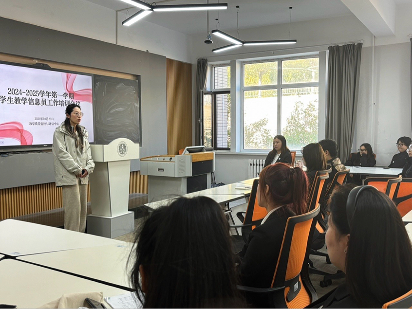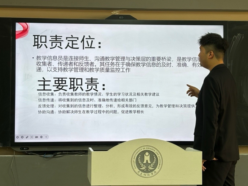 随后,吴界辉进行信息员培训。他首先明确了学生教学信息员的职业定位。接着还详细介绍了信息员的主要职责。