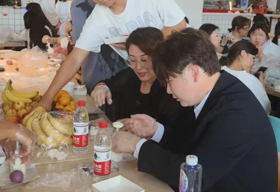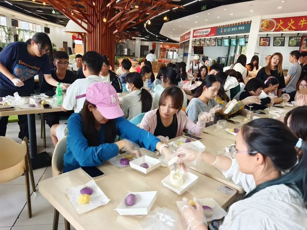 “皓月当空洒清辉,中秋良宵念挚心”。月圆中秋,月饼寄情,活动现场,由学院请来的糕点师傅向大家介绍了制作月饼的馅料配比,耐心为大家讲解制作过程,师生共同分工协作、有条不紊,有的揉皮、有的包馅、有的压模、配合默契。